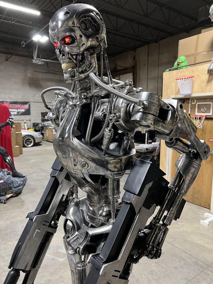Life Size Sideshow Terminator T-800 Endoskeleton Second Version…VERY RARE…we do have the original boxes. This T-800 is in flawless new condition and has only been removed from the boxes for pictures. This listing is for the T-800 Endoskeleton only…other props in the pictures are for your enjoyment.